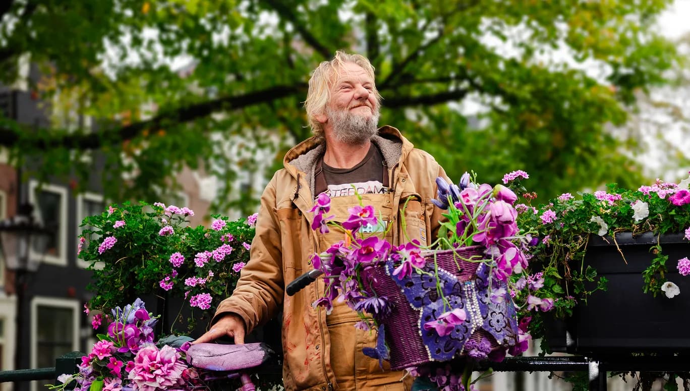 Warren initially started decorating bikes to help his wife, Michelle. She has epilepsy and, as a result, kept getting lost on her way to work in Florida. The decorated bikes on her route were landmarks for her, like stacked stones for mountain hikers. After a city trip in Amsterdam, Michelle kept recalling the vacation: she wanted to go back, and as it turned out, she didn’t lose her way in Amsterdam. And so, after Warren and his wife's emigration, flower bikes have been an integral part of Amsterdam since 2018. 'For me, it's not necessarily about me being known for the bikes, but that they are a symbol for the severity of epilepsy and for Michelle. She probably won't remember you after she meets you, but Amsterdam will remember my Michelle.'