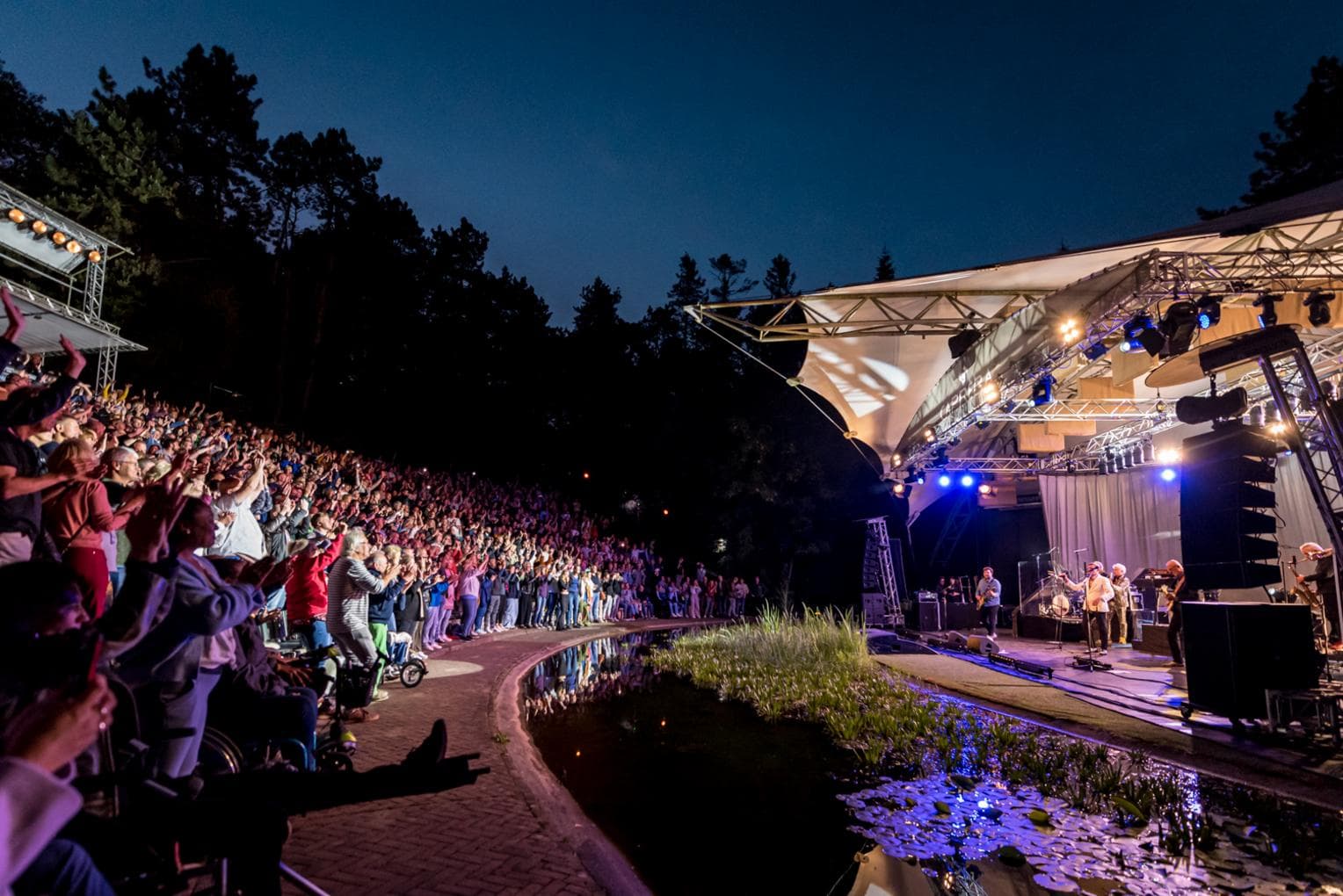 The grandstands of the theatre offer seats for 1100 guests. At large concerts, there are also standing places on the upper and middle steps. For information check the website (in Dutch).