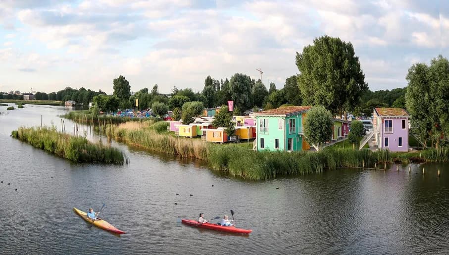 Deze knusse kampeerspot bevindt zich op een klein eiland in het IJmeer, aan de oostzijde van de stad. De camping voelt aan als een gemeenschap en biedt toegang tot een restaurant, supermarkt, buitenkeuken, kruidentuin, kinderboerderij en wekelijkse live muziek en evenementen. Naast plekken voor tenten en caravans, kun je op Camping Zeeburg ook terecht bij één van de kleurrijke 2- of 4 persoons wagonettes of eco-cabines. Deze cabines zijn gemeubileerd en verwarmd.