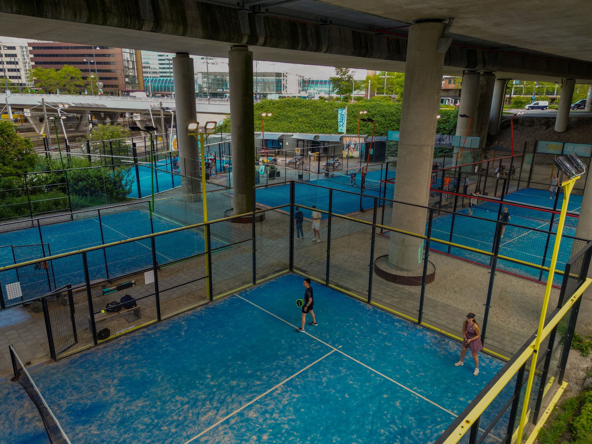 In een grote loods in Amsterdam West hebben twee broers en een zus een prachtige padel locatie neergezet. Als je binnenkomt voelt het bijna alsof je je in Mexico waant. De kleuren van het interieur en van de kleurrijke banen zorgen voor een bijzondere sfeer. In plaats van het standaard sport clubhuis heeft Padel NEXT gekozen voor een nieuwe, kwalitatieve ervaring binnen de sport. Het is een plek waar je graag komt spelen en waar je kan sporten met je vrienden, familie en collega’s. Kom ontspannen in onze lounge of gezellig een drankje doen boven bij de bar!