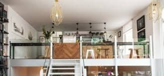 Met grote ramen die uitkijken over de jachthaven. Binnen is het gezellig en kleurrijk. Er is een open keuken met een sushi-bar, veel groene planten, een opvallende groene marmeren bar en een grote trap in het midden.