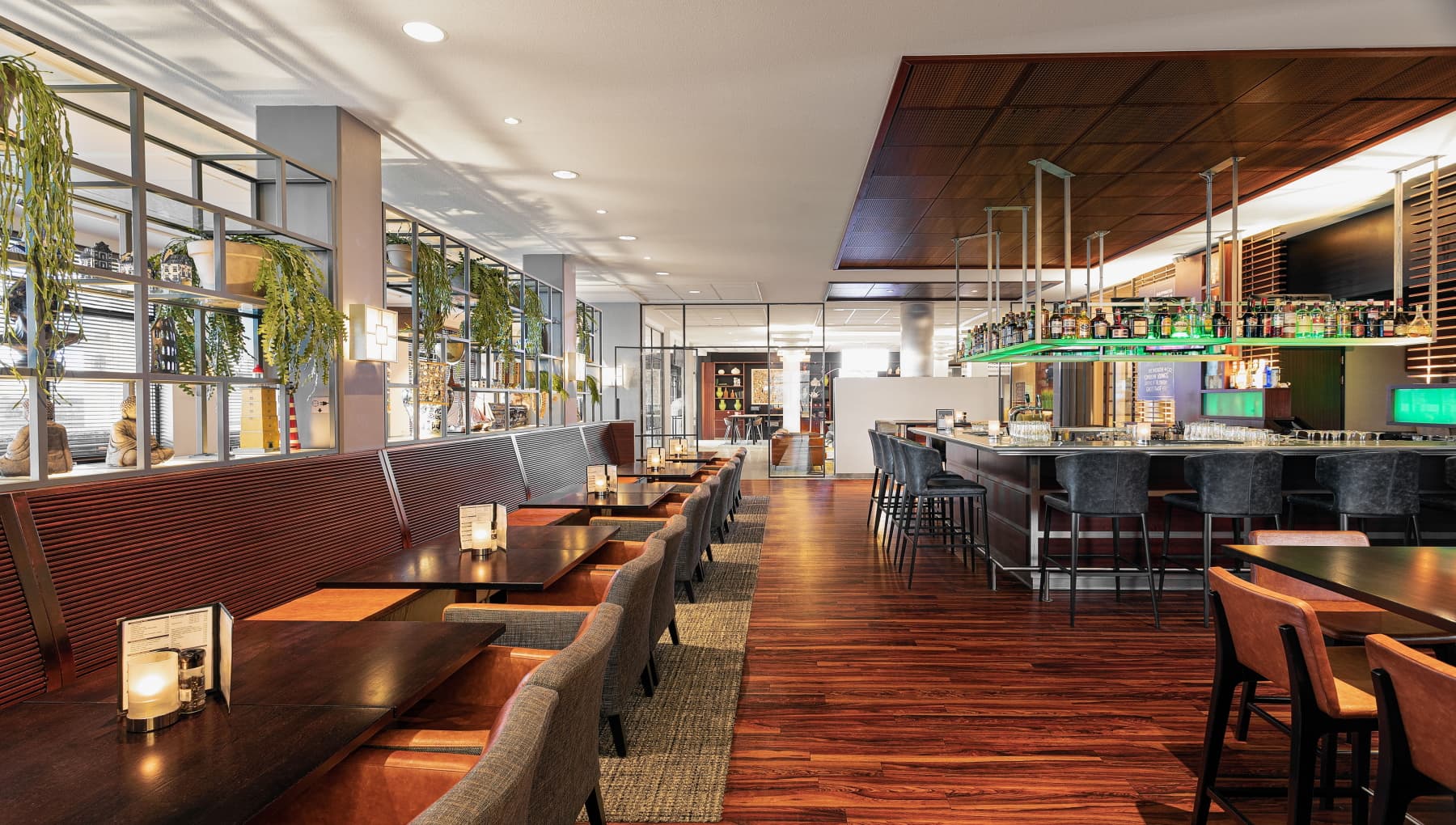 Het gezellige Brasserie-restaurant, met een zonnig terras, biedt een uitgebreid assortiment dranken en heerlijke internationale gerechten. Ook kun je een sandwich, snacks of een souvenir kopen bij the Market.