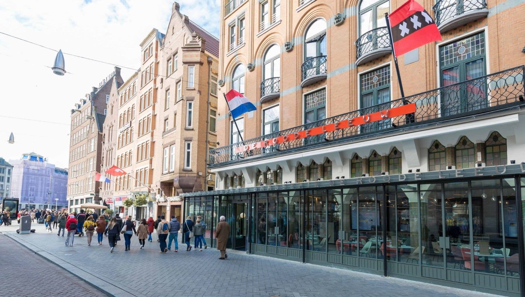 De brasserie van dit hotel is bekend om zijn specialisatie in traditionele Nederlandse gerechten. De Roode Leeuw is synoniem voor Nederlandse gastvrijheid. Het overdekte en verwarmde terras, dat uitkijkt op de Dam en het Damrak is al sinds jaren een goed meeting point.